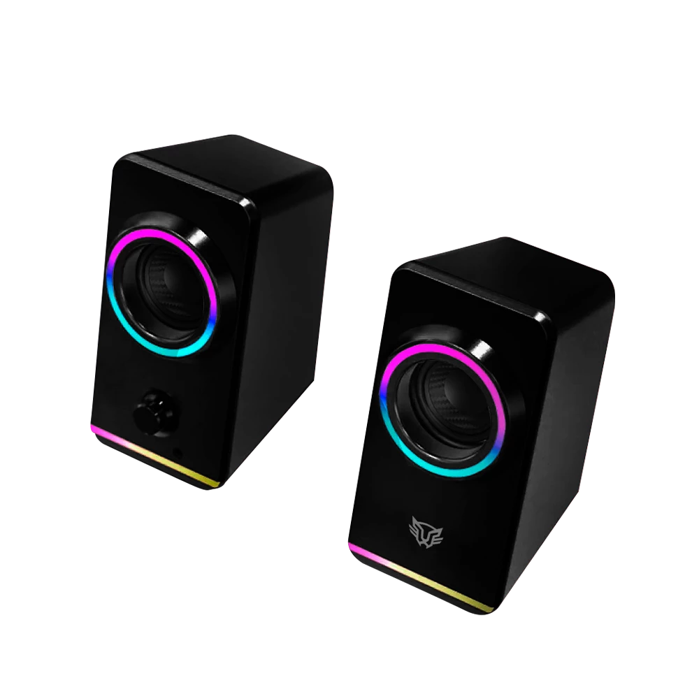 Estas bocinas de 2.0 canales ofrecen un sonido excepcional con una potencia de 10 W, lo que garantiza que cada detalle de tus juegos y música sea cristalino y potente. Su elegante diseño en negro se combina a la perfección con cualquier configuración de juego, y la iluminación RGB personalizable añade un toque de estilo adicional.
